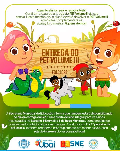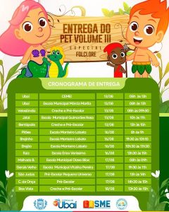 Confira o cronograma da Entrega do PET III da Rede Municipal de Ensino de Ubaí, que ocorrerá de 13/8 a 18/08.